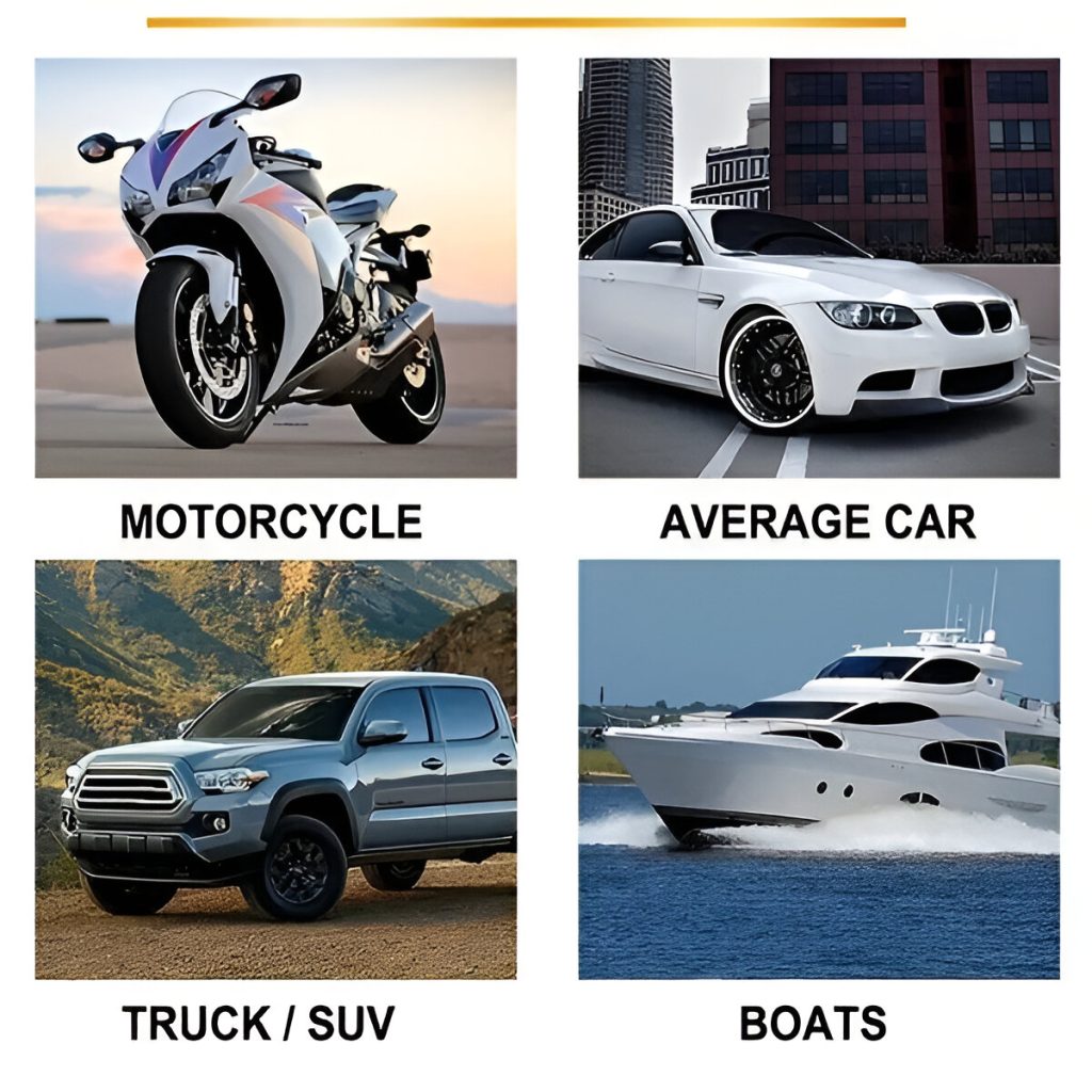 Naudokite CARCOAT purškiklį automobiliams, valtims, motociklams, kemperiams, keturračiams ir kt. Jis saugus visiems paviršiams, įskaitant dažus, plastiką ir stiklą.