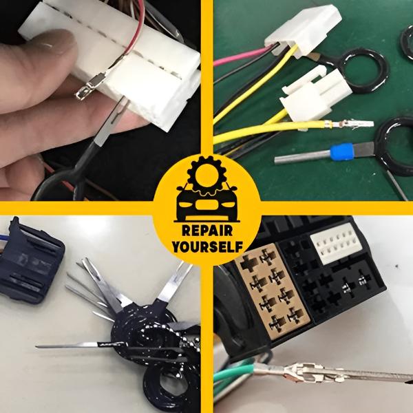 🔧 Šis įrankių rinkinys taupo laiką ir pastangas, nes be vargo pašalinsite laidus iš jungčių automobiliuose, motocikluose ir elektronikos prietaisuose, nepažeisdami kaiščių ar laidų.